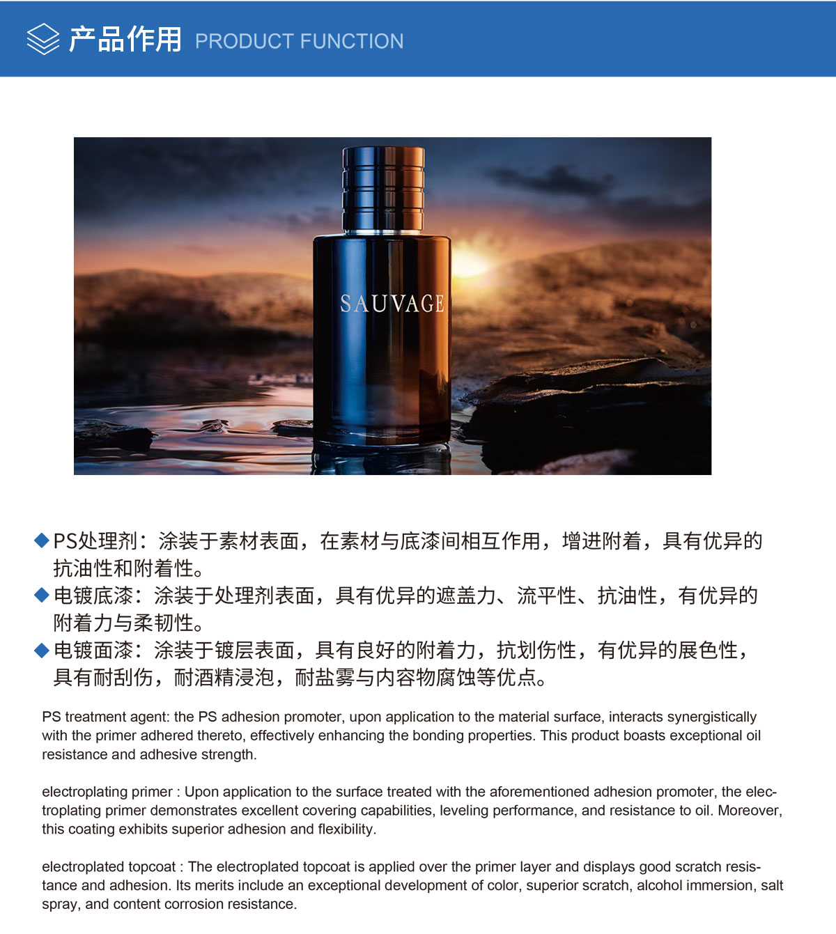 PS/AS/MS材质UV涂装体系同PP材质涂装相近,一般由PS处理剂 +UV电镀底漆+UV电镀面漆组成,因其易腐蚀、难附...